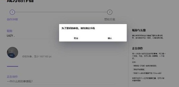 5. 绑定手机号并完善信息后,即可分享个人创作方案正式成为平台创作者。