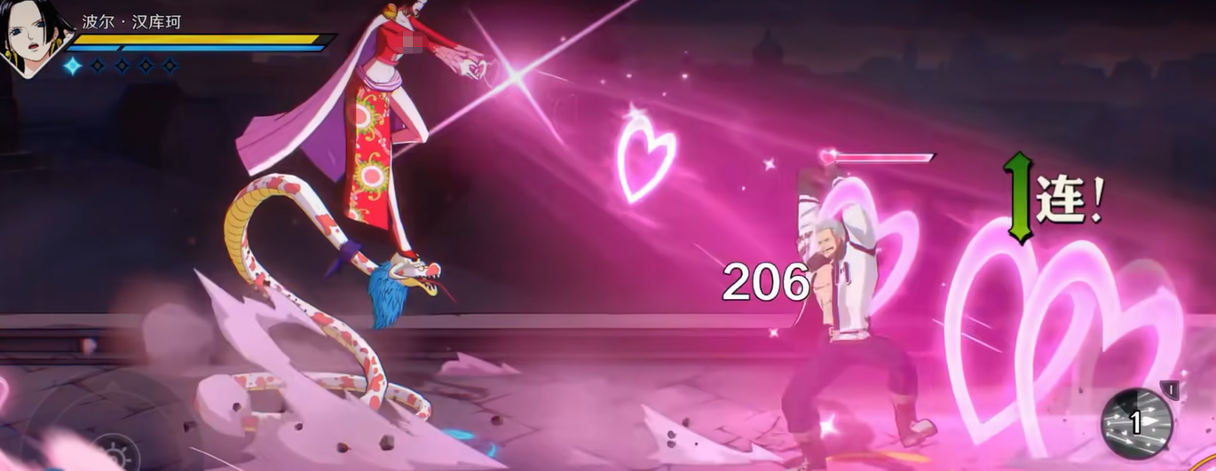 其二为【魅惑凝视】:除路飞外所有敌方单位与女帝正面相对时,头顶将浮现独立进度条。满格后目标陷入3秒【花痴状态】(不可行动、不可防御),此时可自由衔接连招。若敌人转身或脱离女帝视野,进度条将逐步衰减。