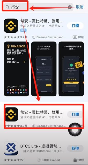 成功登录后搜索"币安",注意避开广告链接,选择正版应用下载。已安装用户可直接点击打开。
