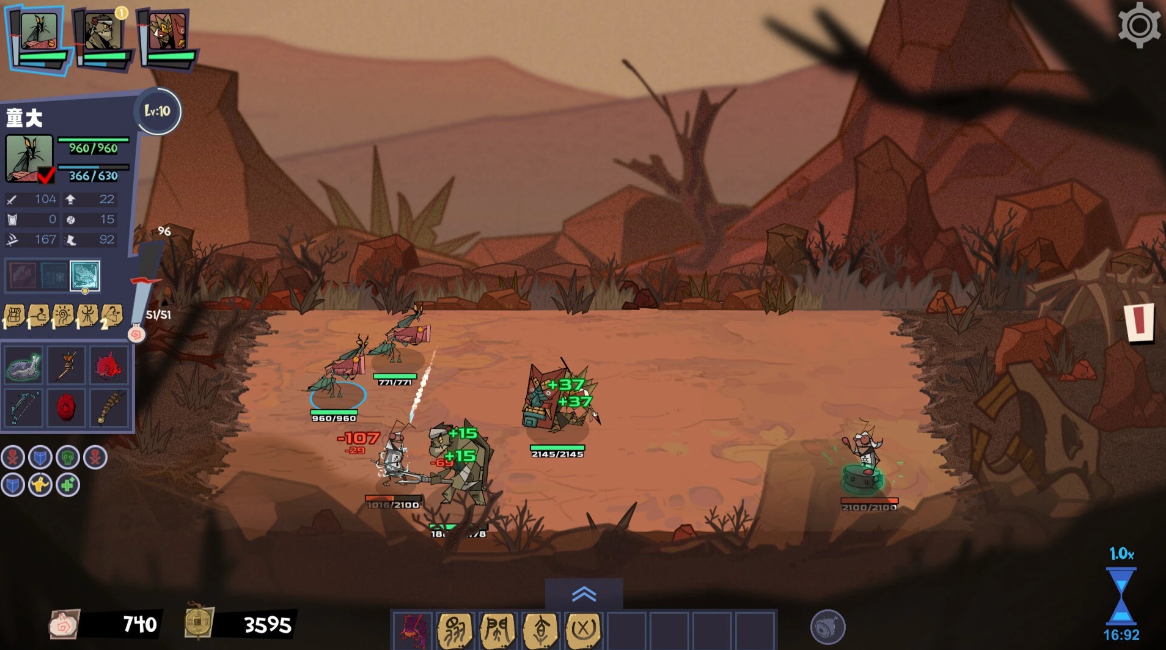 核心玩法融合Roguelike随机成长机制与自走棋式布阵逻辑,强调阵容搭配与策略演进。每场战斗后,玩家可对单位进行技能升级、装备强化及石碣铭文配置;目标是在限定回合内击败盘踞各地的敌方首领。过程中将遭遇蟑螂、蚊子等差异化敌人,并解锁丰富多样的装备组合路径,确保体验兼具深度与重复可玩性。