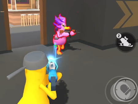 从整体产品定位来看,“嘎嘎射击”以鲜明卡通风格构建差异化体验:角色均为拟人化动物形象,动作夸张、表情生动,具备强视觉记忆点;操作体系高度简化,采用左手虚拟摇杆移动+右手滑动瞄准基础架构,准星锁定目标后自动完成蓄力与射击流程,彻底取消后坐力模拟与压枪机制,大幅降低操作门槛;单局时长稳定控制在3至5分钟区间,适配通勤、午休等短时场景;爆炸特效采用高密度粒子渲染技术,画面冲击力强,情绪释放效率突出。